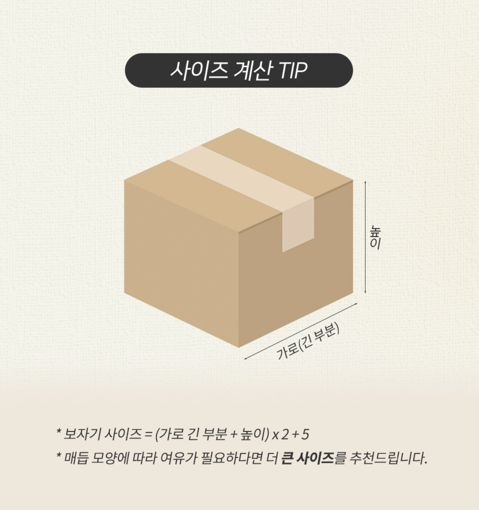 저와 같은 방식으로 포장하실 분들은 한 치수 작게해도 충분할 거예요.