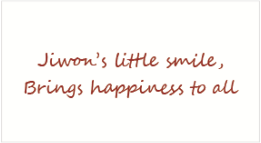 자수 문구는 jiwon’s little smile, Brings happiness to all.”